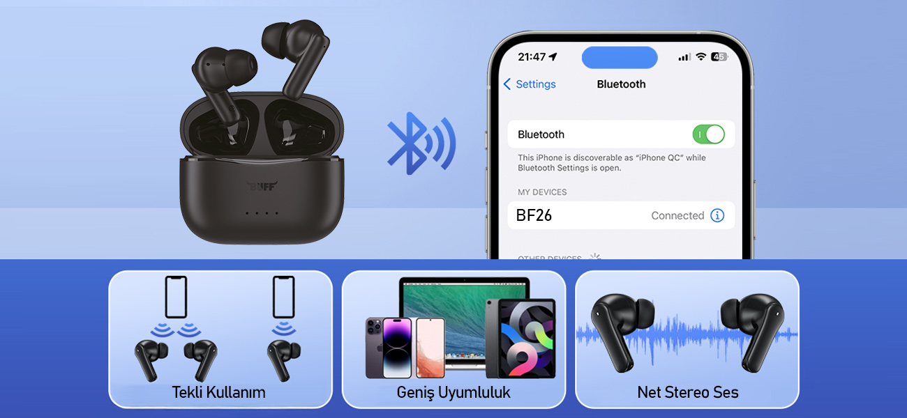 Buff BF26 TWS Bluetooth 5.4 Kulakiçi Kulaklık