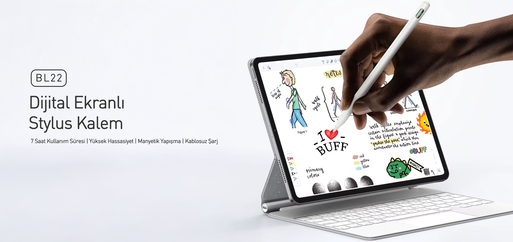 BUFF BL22 Stylus Pen Kablosuz Şarjlı Akıllı Tablet Kalemi