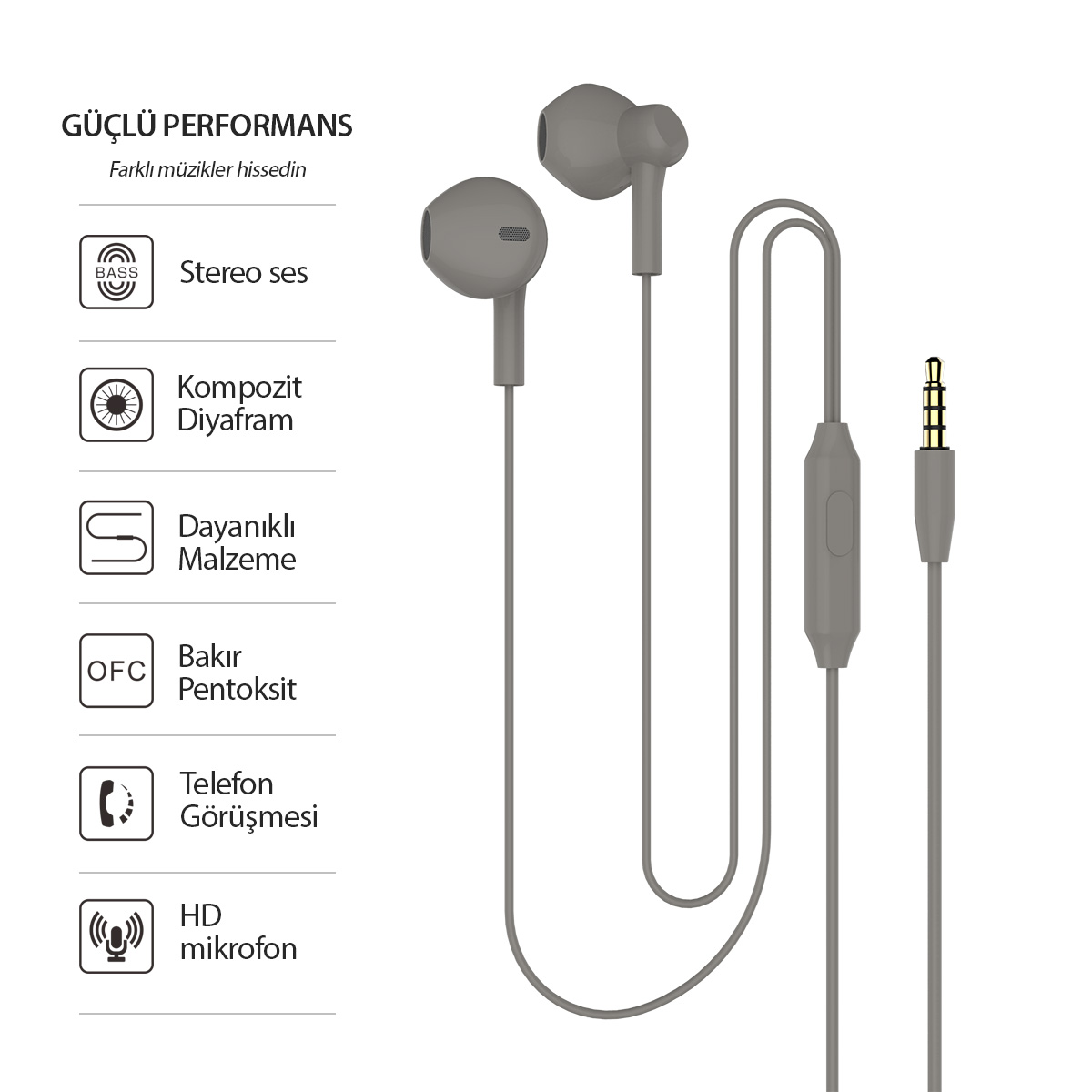 Kablolu kulaklık, güçlü bass kalitesi, konforlu kullanım için geliştirilmiş tasarım, 2 farklı renk seçeneği ile sizleri bekliyor.