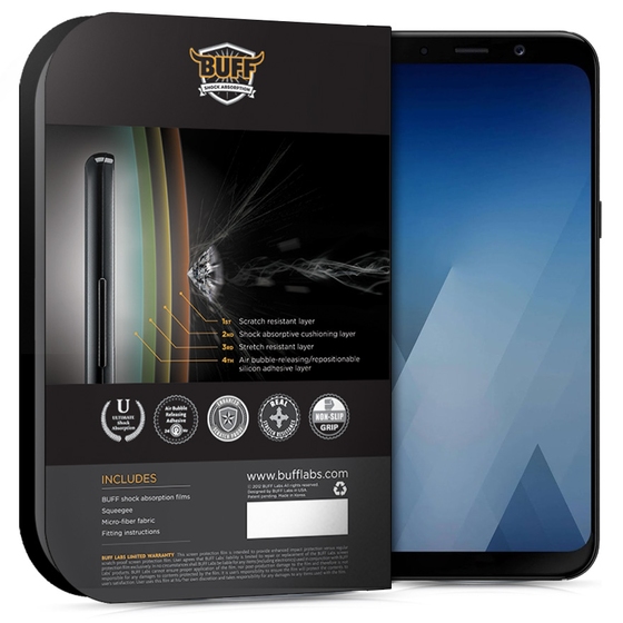 BUFF ekran korumaya yardımcı film dört katmandan oluşur ve her bir katmanın farklı işlevi vardır. Öncelikle , şok darbe emici ve dağıtıcı katman ve anti-şok katmanı ile dış darbelere karşı yardımcı koruma görevi sağlar. Bu ilk katman darbelerin büyük bir kısmını absorbe ederek azaltır. Daha sonra bu katmandan geçen darbeler, darbe dağıtıcı katman tarafından dağıtılır.