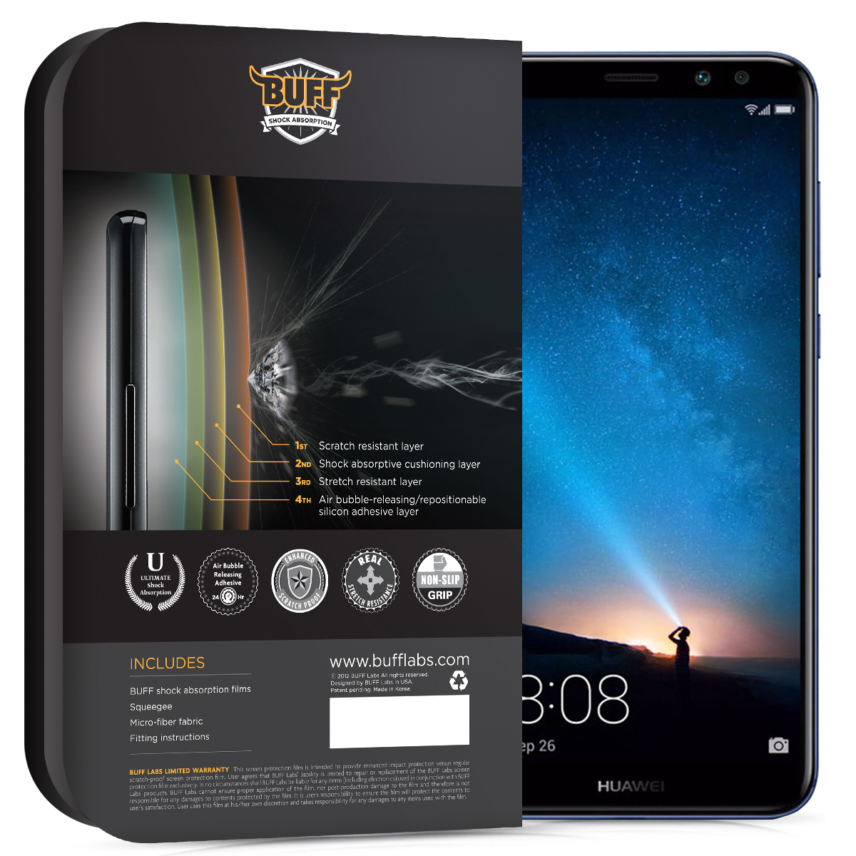 BUFF ekran korumaya yardımcı film dört katmandan oluşur ve her bir katmanın farklı işlevi vardır. Öncelikle , şok darbe emici ve dağıtıcı katman ve anti-şok katmanı ile dış darbelere karşı yardımcı koruma görevi sağlar. Bu ilk katman darbelerin büyük bir kısmını absorbe ederek azaltır. Daha sonra bu katmandan geçen darbeler, darbe dağıtıcı katman tarafından dağıtılır.