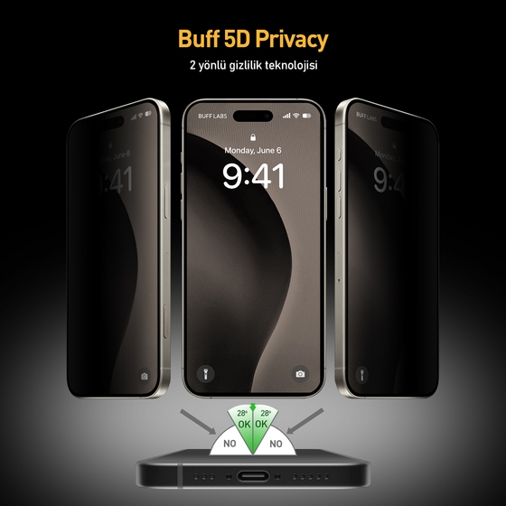 1 x Buff iPhone 16 Pro Max 5D Privacy EasyFit Ekran Koruyucu