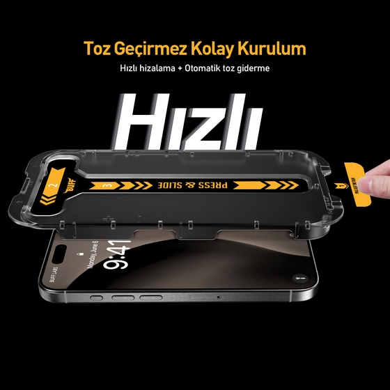 Buff EasyFit ekran koruyucu takarken harcanan zamanı en aza indirecek şekilde tasarlanmıştır. Paket içeriğinde bulunan uygulama aparatı sayesinde oldukça kolay bir şekilde kurulumu tamamlayabilirsiniz.