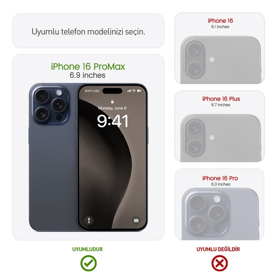 Buff iPhone 16 Pro Max Avantaj Paket - Kılıf + Privacy Ekran Koruyucu + Lens Koruyucu