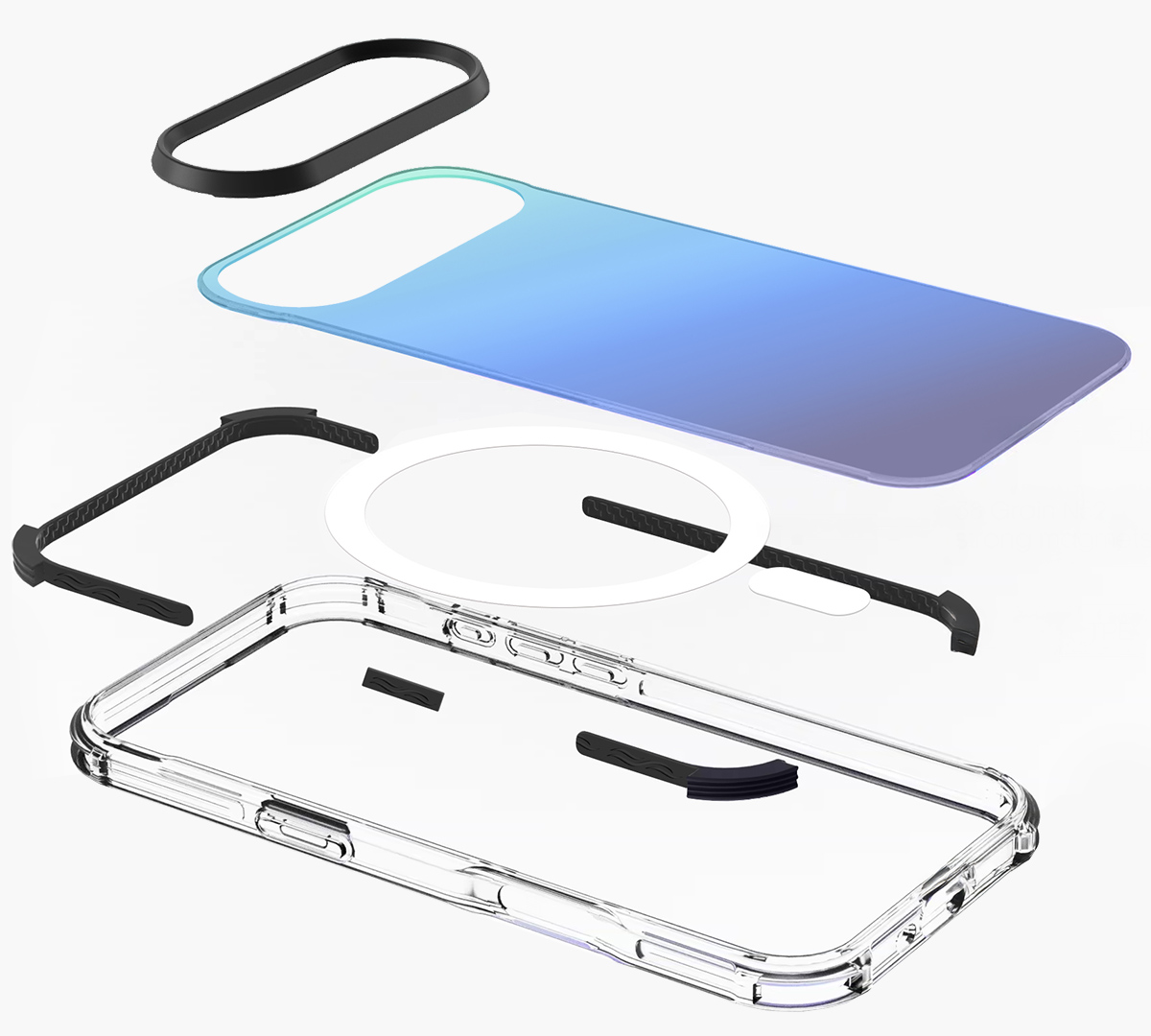 Çift katmanlı yapısı ve şeffaf yumuşak dokusu ile Radiant X hem telefonunuzu etkin korur hem de telefonunuzun tasarımını ortaya çıkarmasını sağlayacaktır. Radiant X Kılıf 2 katmandan oluşmaktadır. İlk katman güvenliği sağlayan TPU yan yüzeydir, farklı renk seçenekleri vardır ve yumuşaktır. İkinci katman ise korumayı iyileştirmek için Polikarbon sert plastik olan arka yüzeydir.