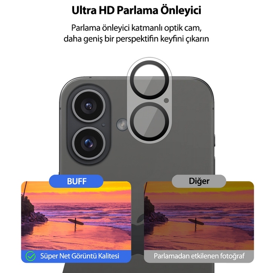 Buff iPhone 17 Şeffaf Kamera Lens Koruyucu 2 Adet