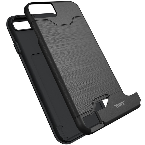 Buff Slim Folder Kılıf, alt kısmında mükemmel şekilde gizlenmiş bir standa ve cüzdanınızı evde unuttuğunuzda zorda kalmamanız için kredi kartınızı, kimliğinizi, hatta nakit paranızı saklayacak bir bölmeye sahiptir.