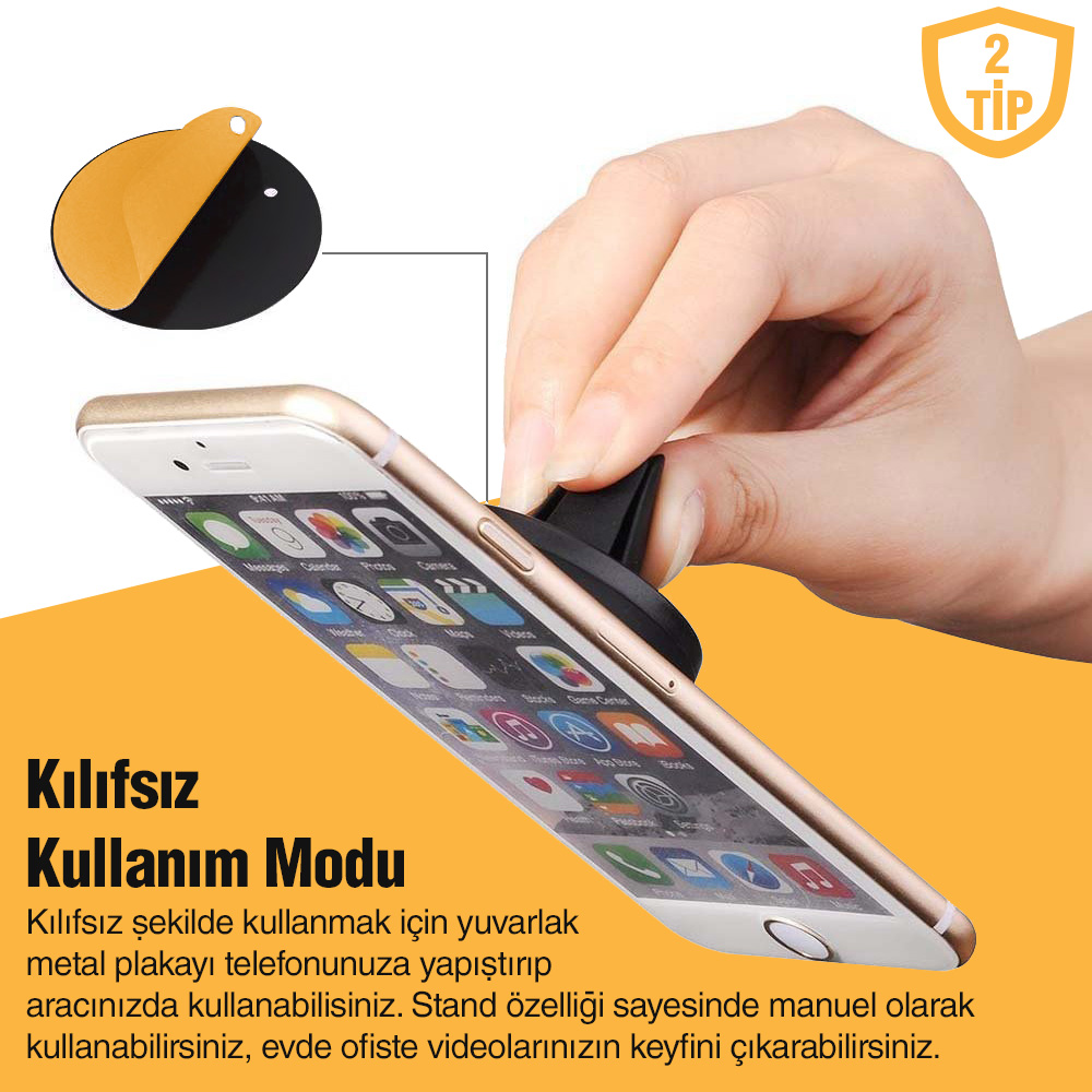 Evrensel Tüm Cihazlar ile Uyumludur. Güçlü Mıknatıs - Kolay Kurulum - 360 Derece Dönebilme - Stand Özelliği - Magnetic Car Holder